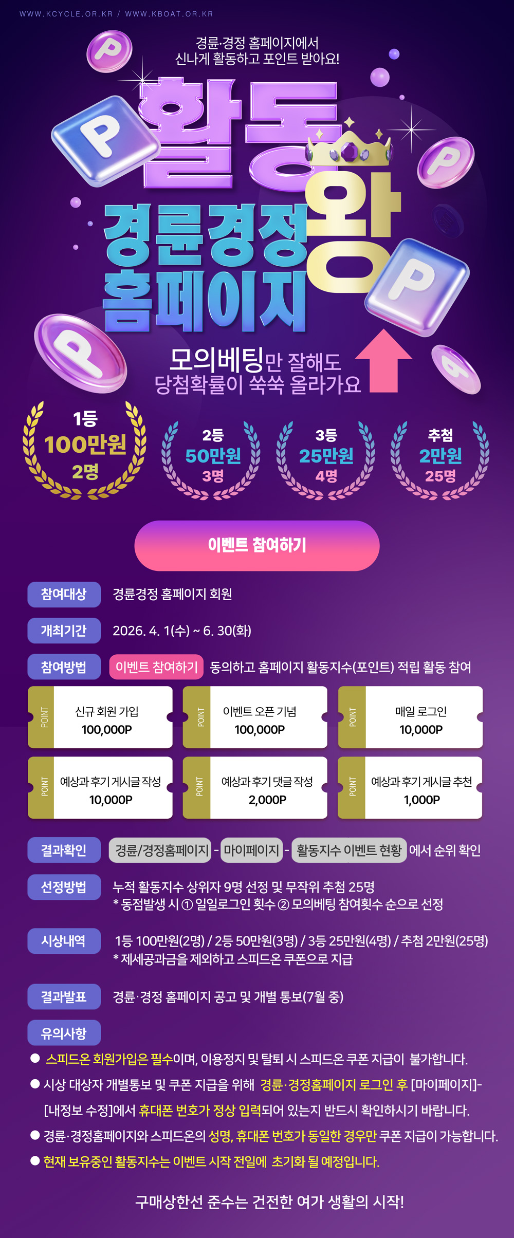 경륜경정홈페이지 활동왕 선발대회 개최 안내