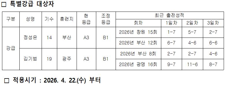 광명 제16회 특별강급 대상자 안내 2026.04.19